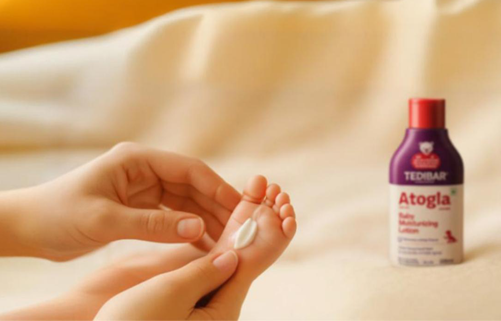 Hydration is key when it comes to combating dry skin in babies. After bathing your little one, gently pat their skin dry with a soft towel and immediately apply a fragrance-free moisturiser. Look for moisturisers and lotions like Atogla Body Lotion, specifically formulated for baby's delicate skin, and free from harsh chemicals and allergens. By sealing in moisture, you can help prevent dryness and keep your baby's skin supple.